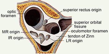 EOM contraction is reflected mostly in posterior crossection increases (Miller 1989) and consequently, it may be useful for measurements to extend to the origin. Further, generally available clinical scanners can visualize the orbital apex sufficiently well to use muscle origins as head-fixed referents, providing another reason to routinely capture the whole orbit. Muscle origins can be localized with about 2 mm longitudinal accuracy. Two measures of muscle size are generally useful. The first is an estimate of the total volume of the muscle, apart from the flat portion that wraps around the globe, which is difficult to visualize but also has little, and generally unchanging, volume. The second is the maximum crossection, and perhaps the longitudinal position of that maximum, which has been shown to move posteriorly with contraction (Miller 1989). Centerlines, reflecting muscle paths, are easily computed from 3D reconstructions. |